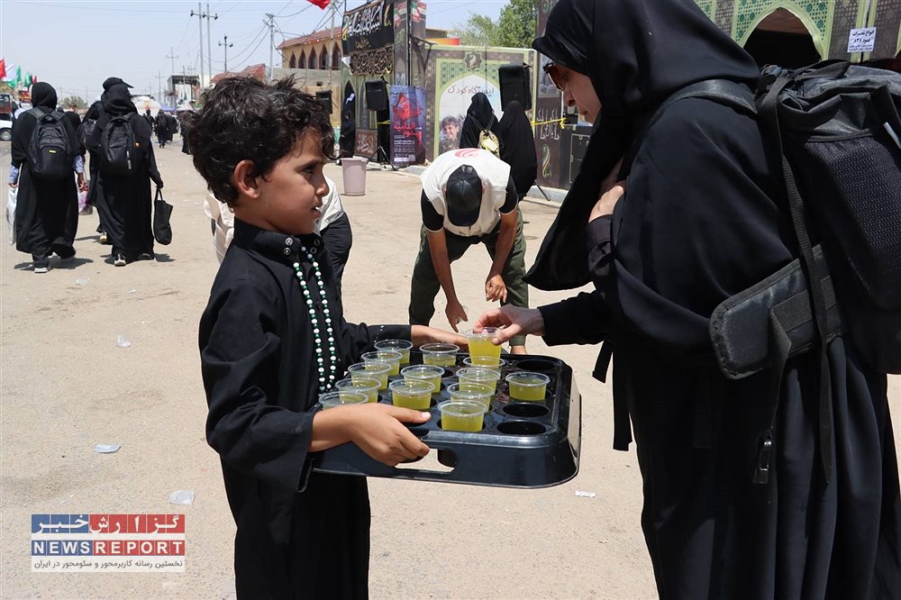 خدمت رسان موکب آبشار عاطفه‌ها در مسیر اربعین 1404 از پنجره دوربین (17 مردادماه)